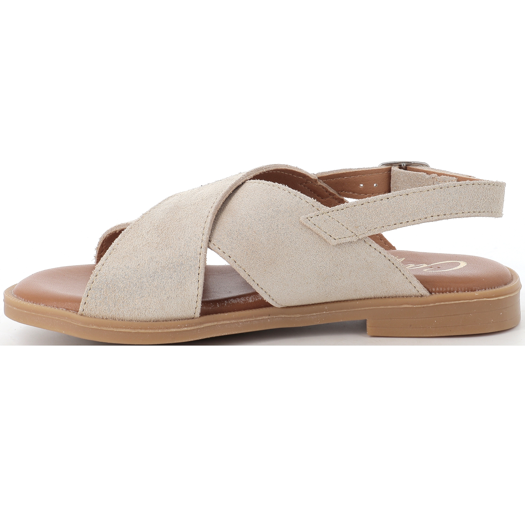 De couleur Beige pailleté, on adore son empeigne avec ses 2 larges brides croisées ainsi que sa fermeture à boucle sur le côté de la cheville pour un ajustement parfait du pied de votre enfant.