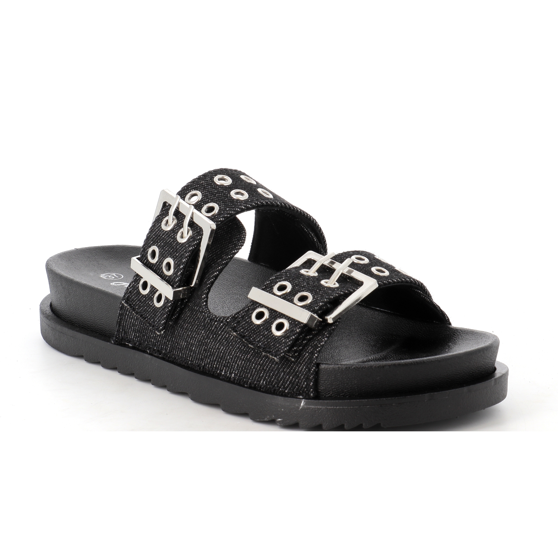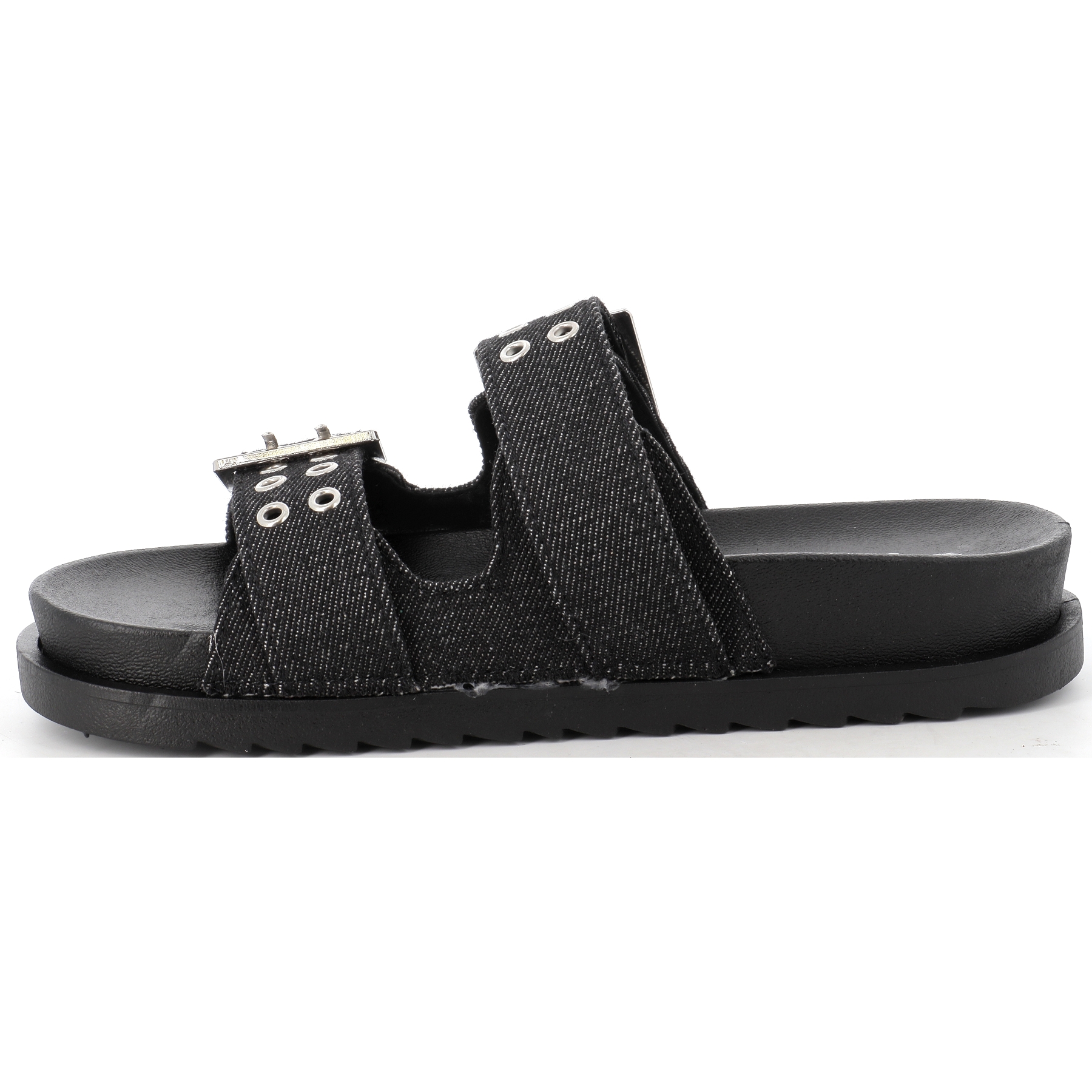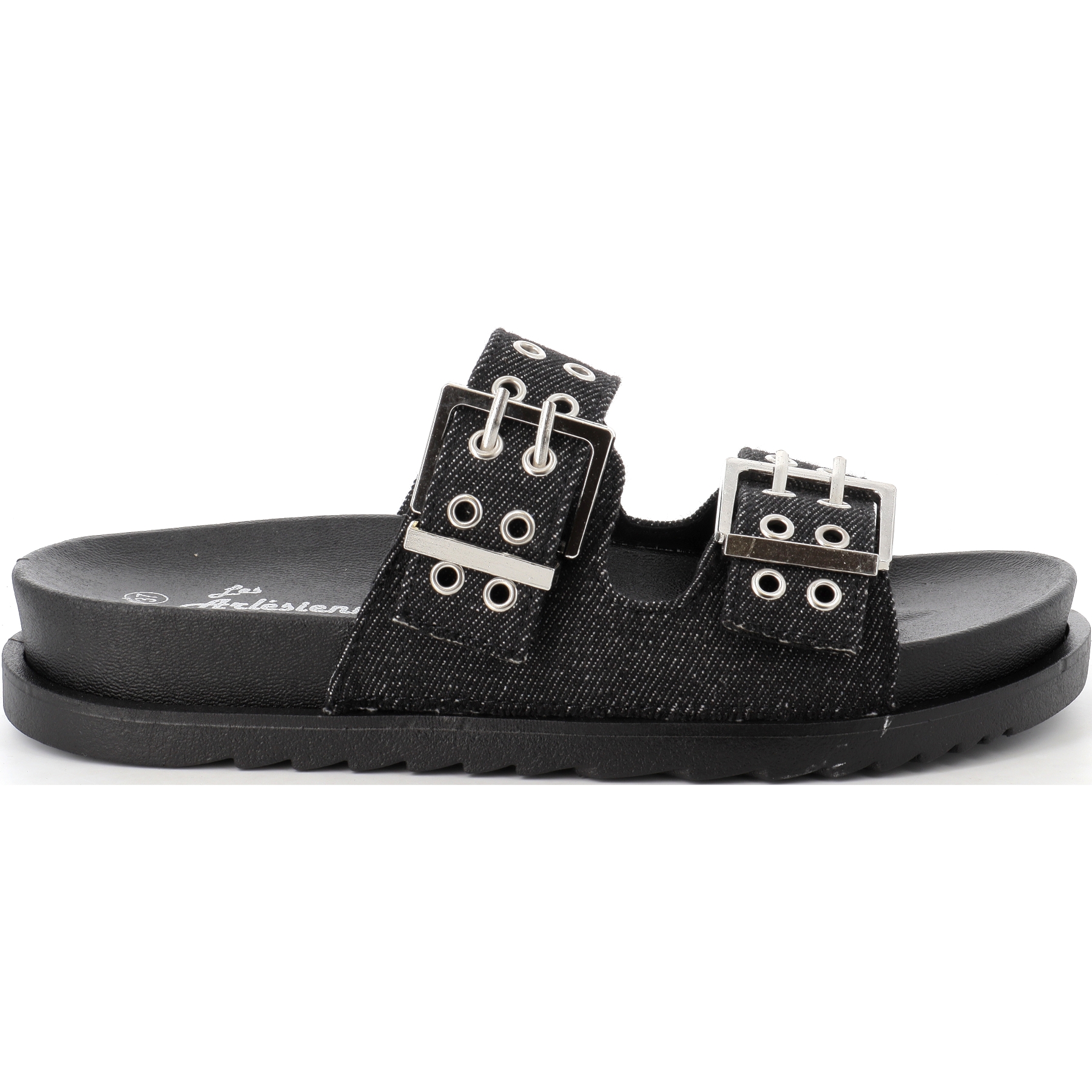 Sa tige perforée en imitation jean noir avec deux brides à boucles réglables sur le dessus du pied ainsi qu'une semelle intérieure à forme anatomique vous assurera un excellent maintien du pied et un ajustement personnalisé.