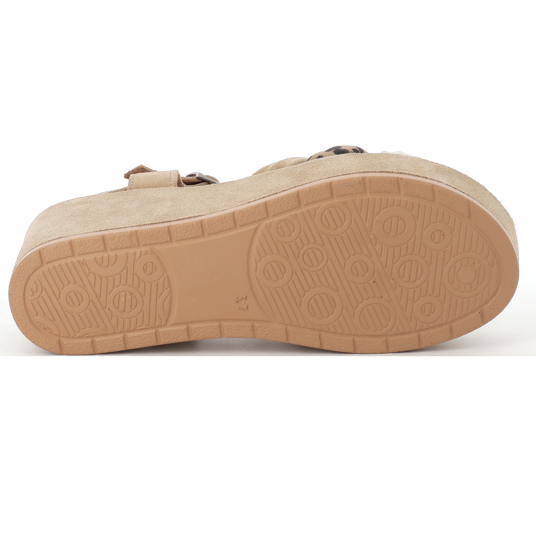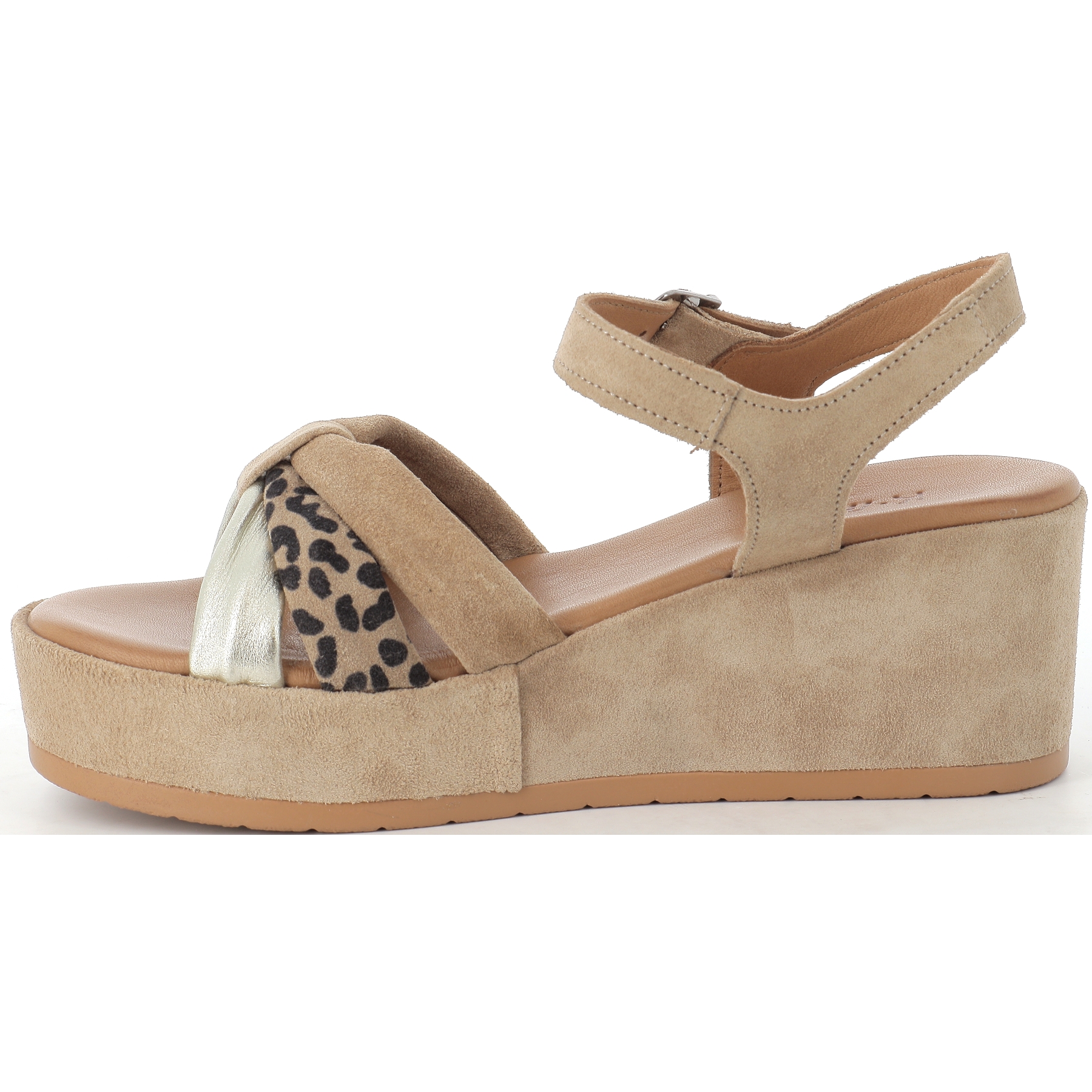 On adore son empeigne cuir velours, qui lui donne un coté plus bohème chic, ainsi que sa couleur beige nuancé doré et leopard pour s'associer à vos plus belles tenues d'été
