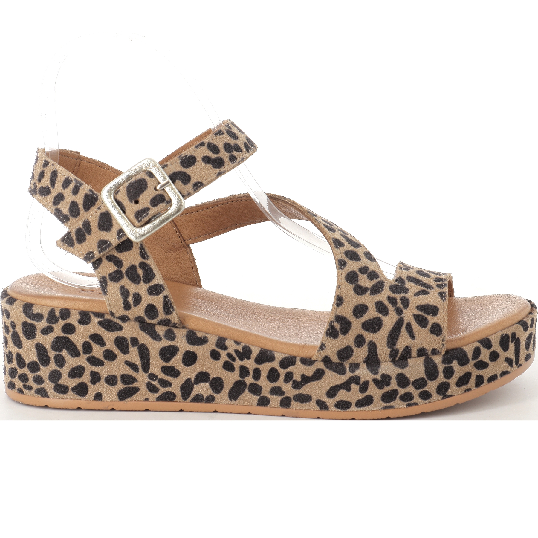 Découvrez le nu pieds compensé Galour imprimé guepard de la marque K MARY .
