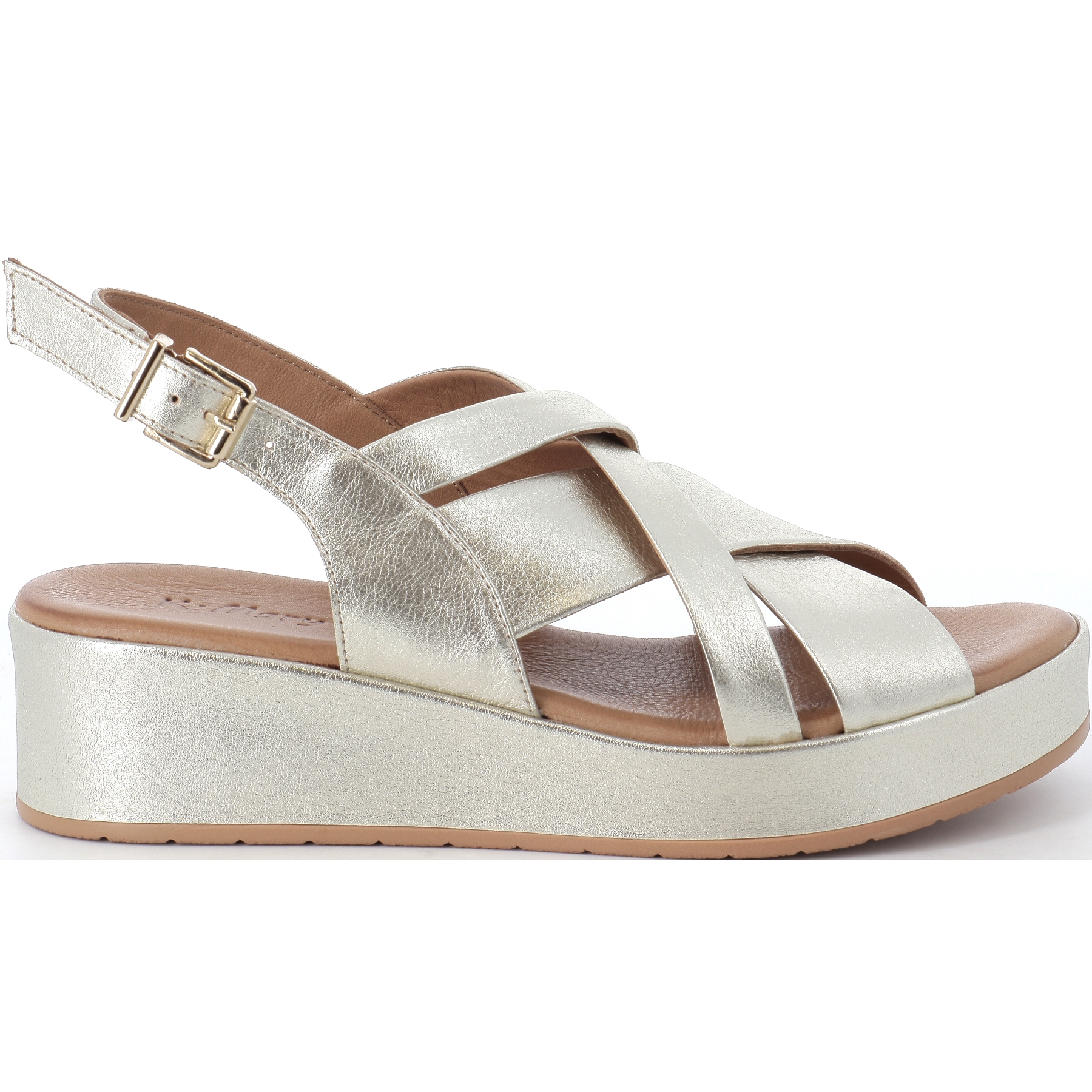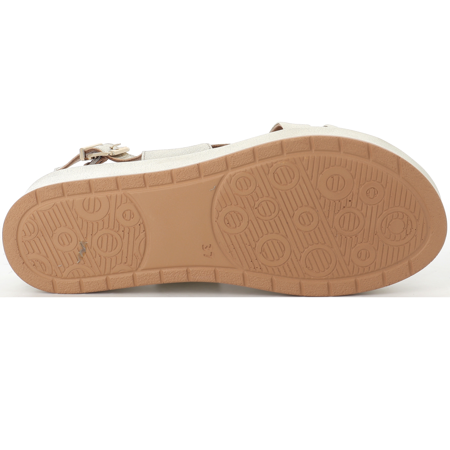 Découvrez le nu pieds compensé Garus doré de la marque K MARY .