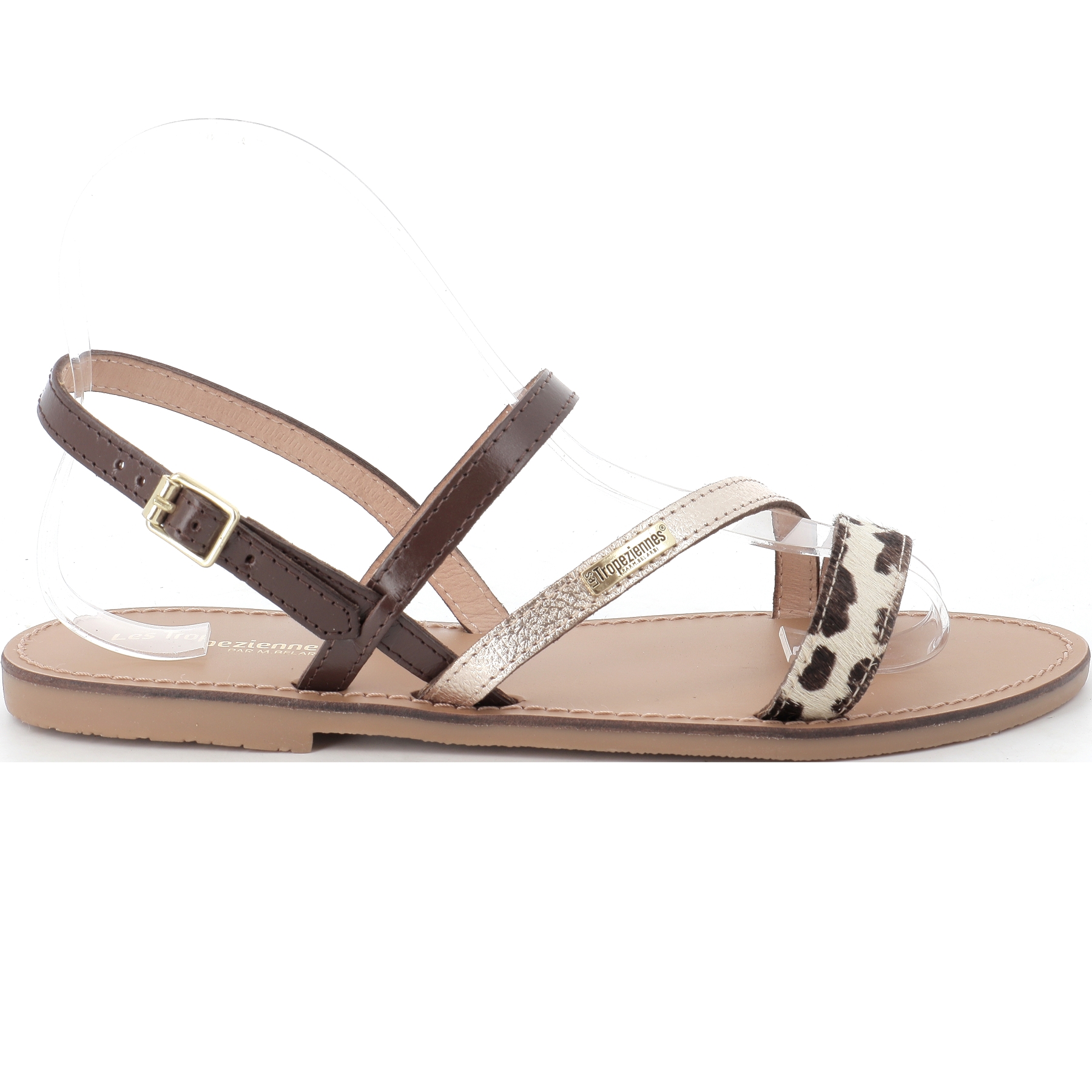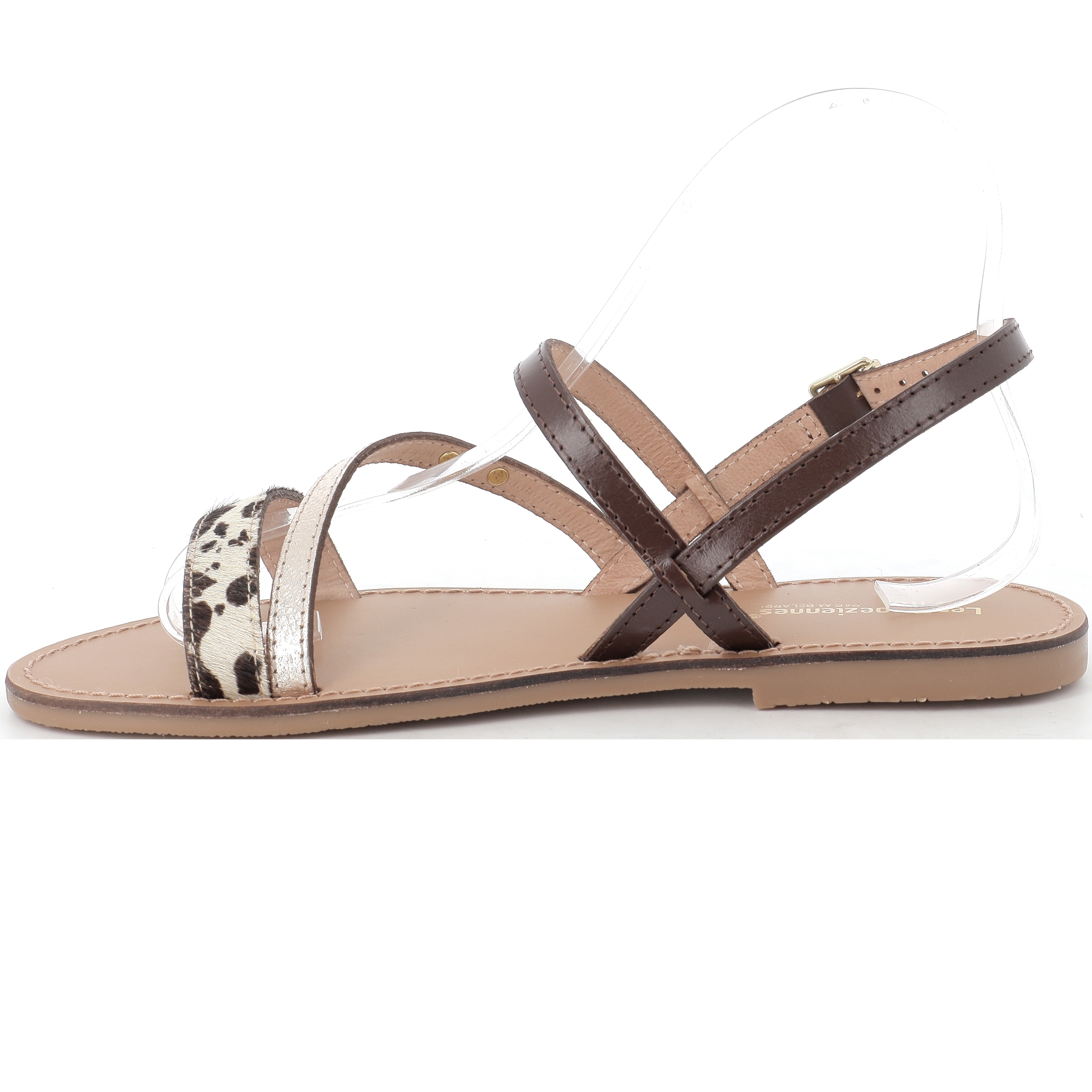 De couleur marron et sa bride imprimé vache, cette chaussure conviendra avec toutes vos tenues estivales.
