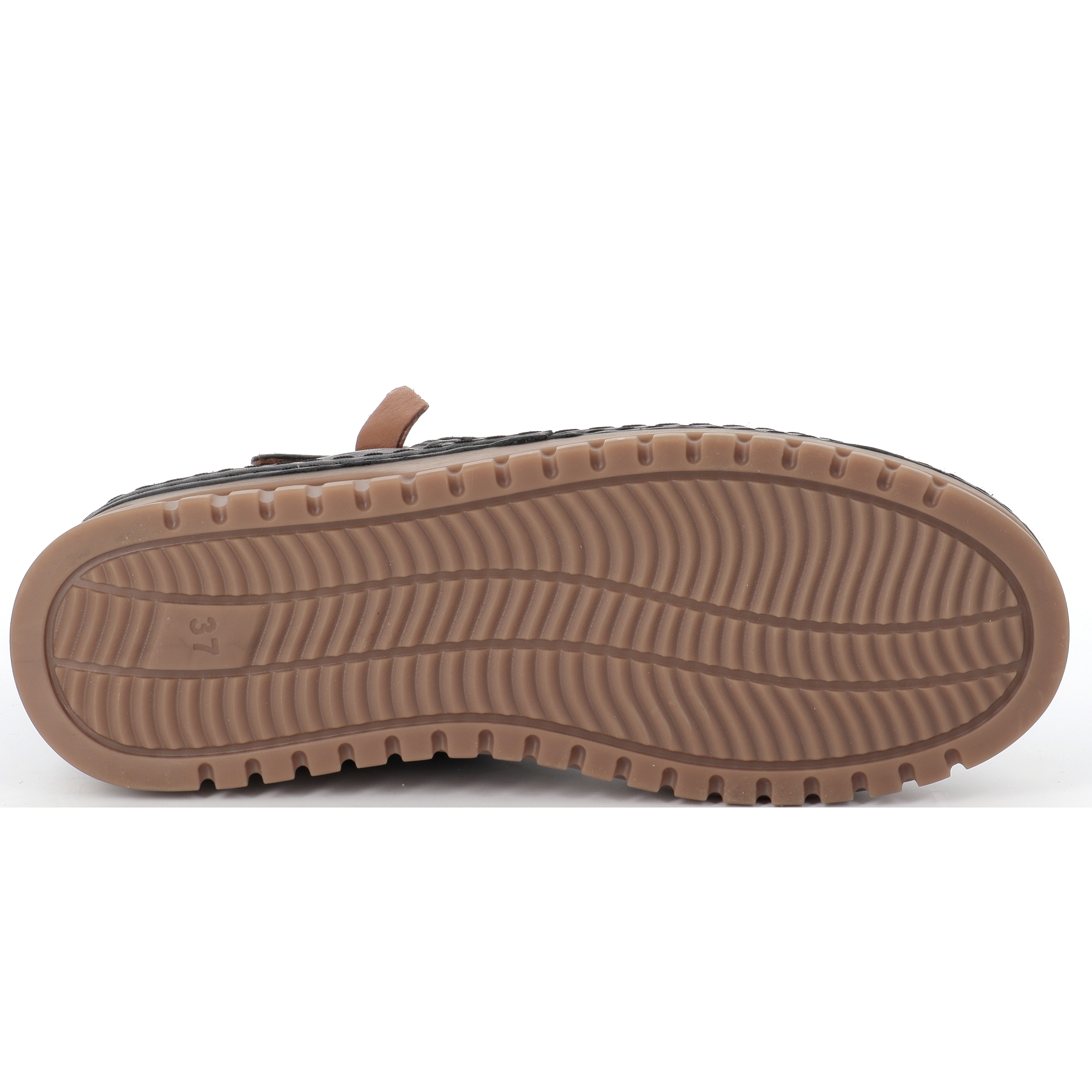 La semelle extèrieure légèrement crantée et intèrieure amovible.