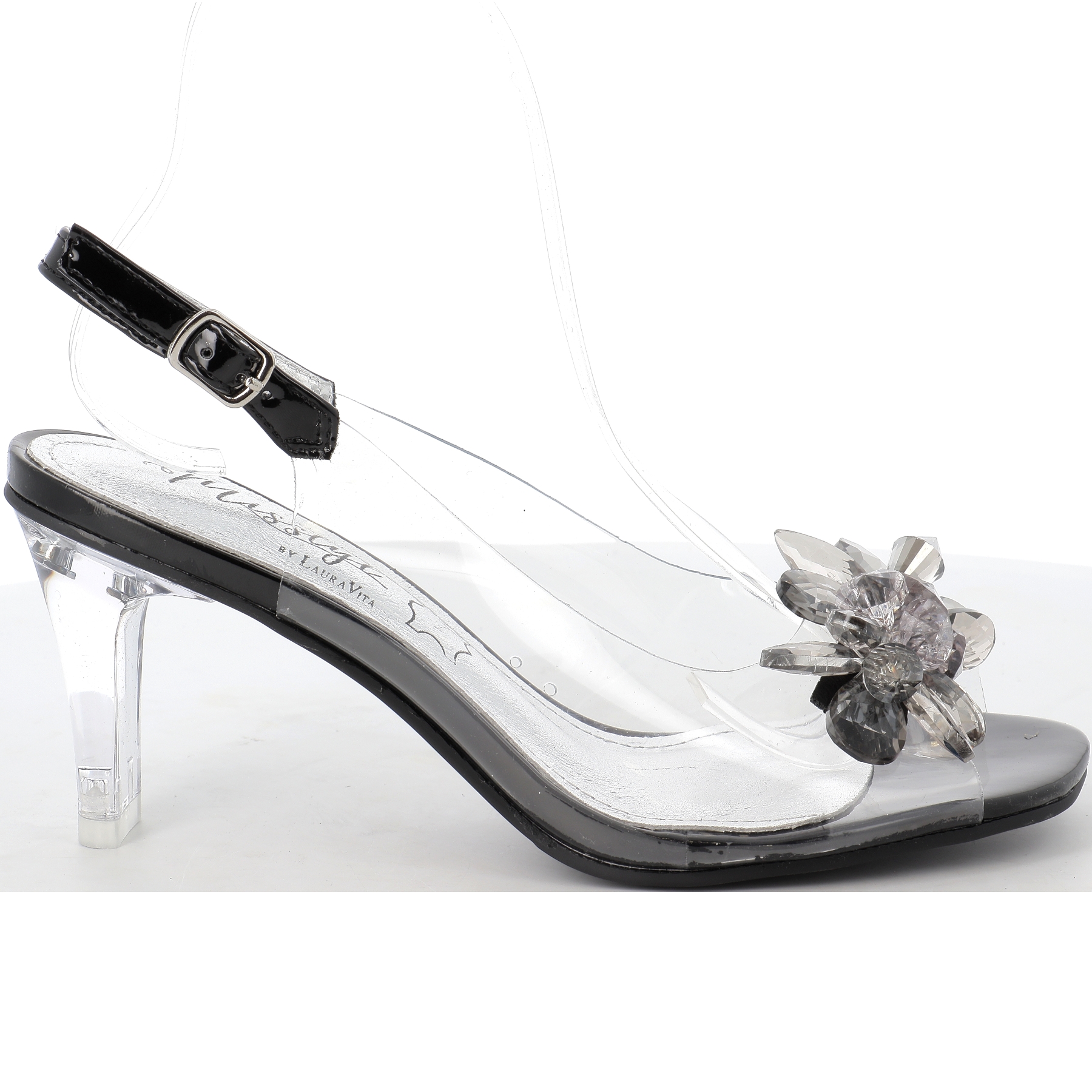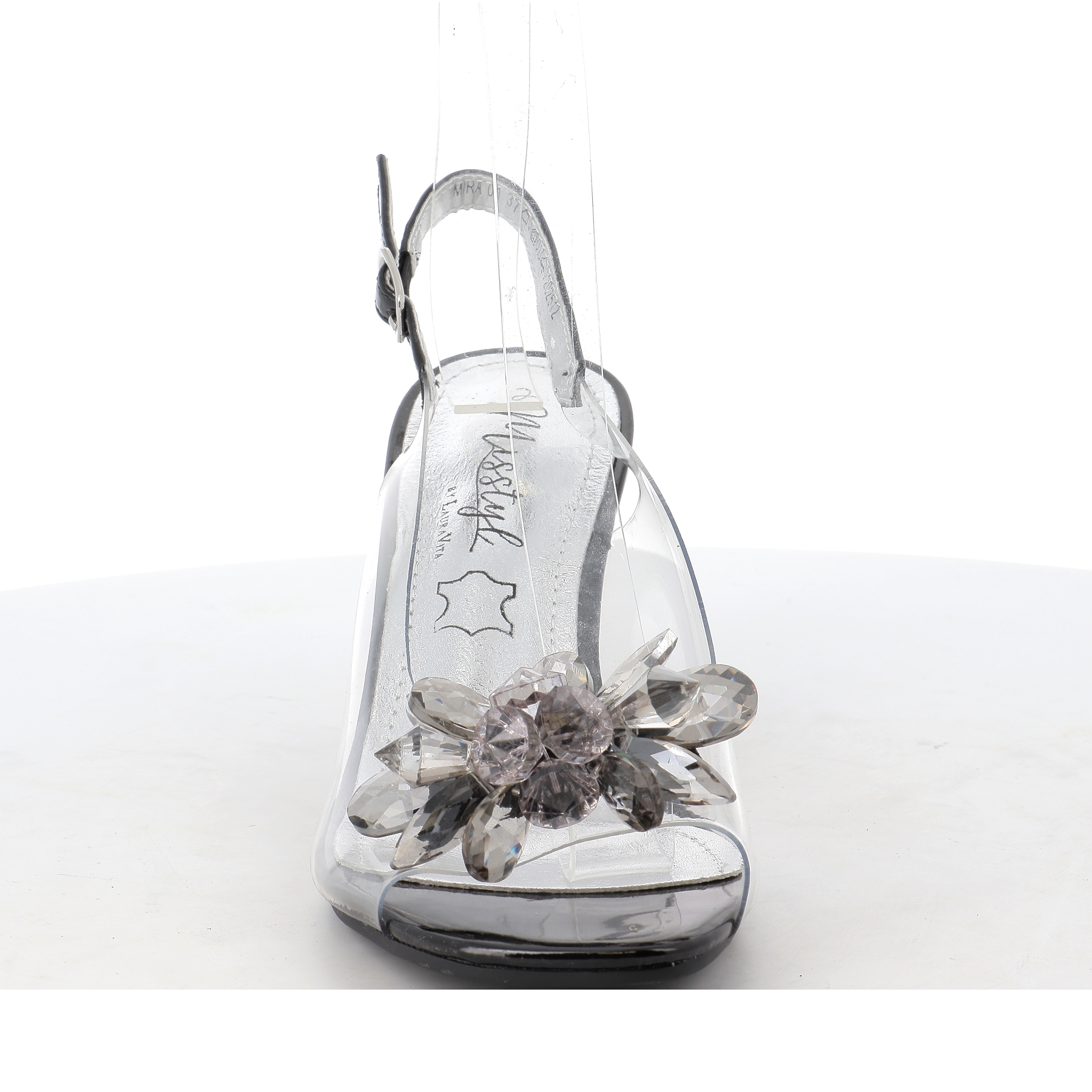 Avec une finition brillante, un sublime ornement de strass et de perles noires sur l'avant apportent une touche glamour à vos pieds.