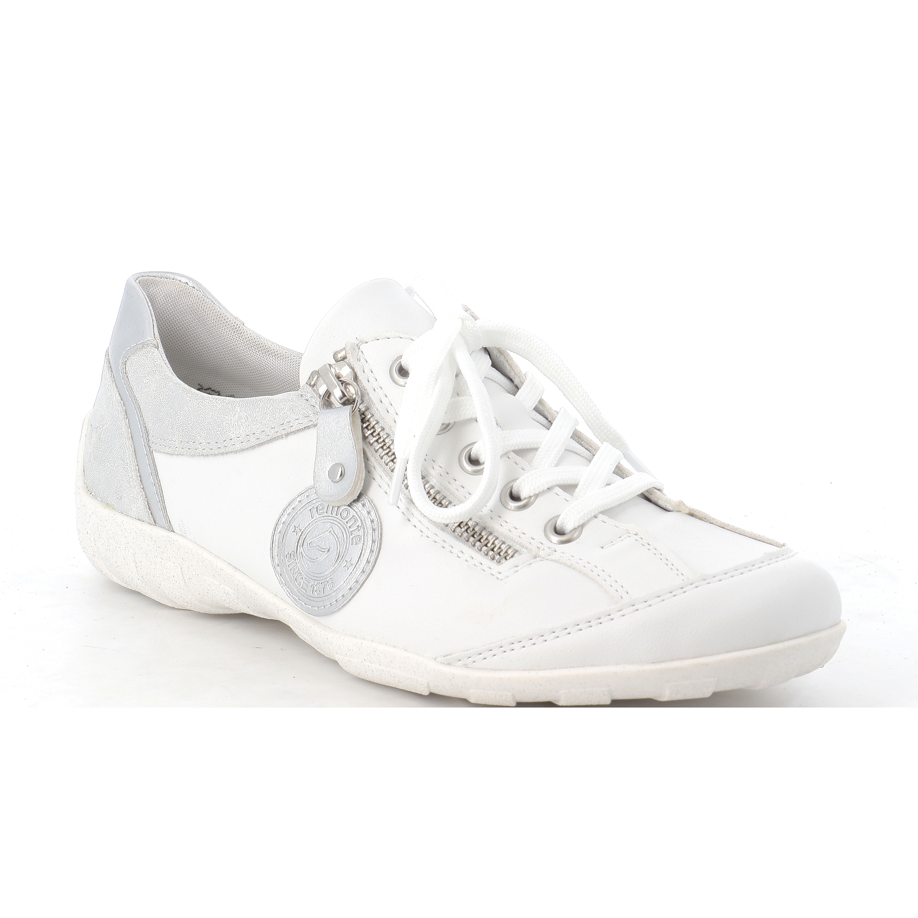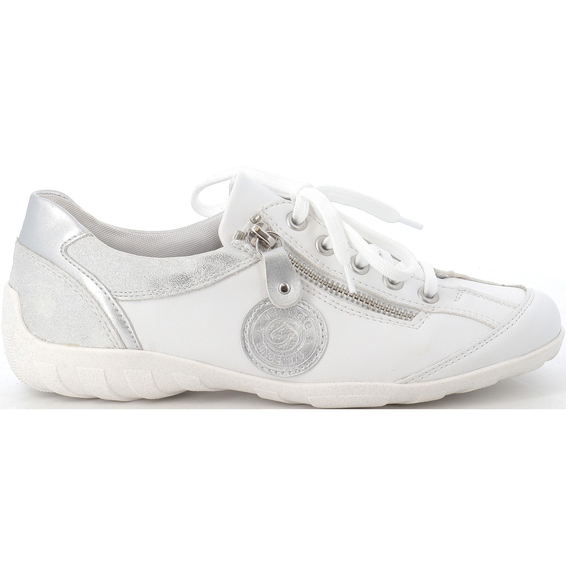 Découvrez les tennis R3408 blanc et argent de de la marque REMONTE .