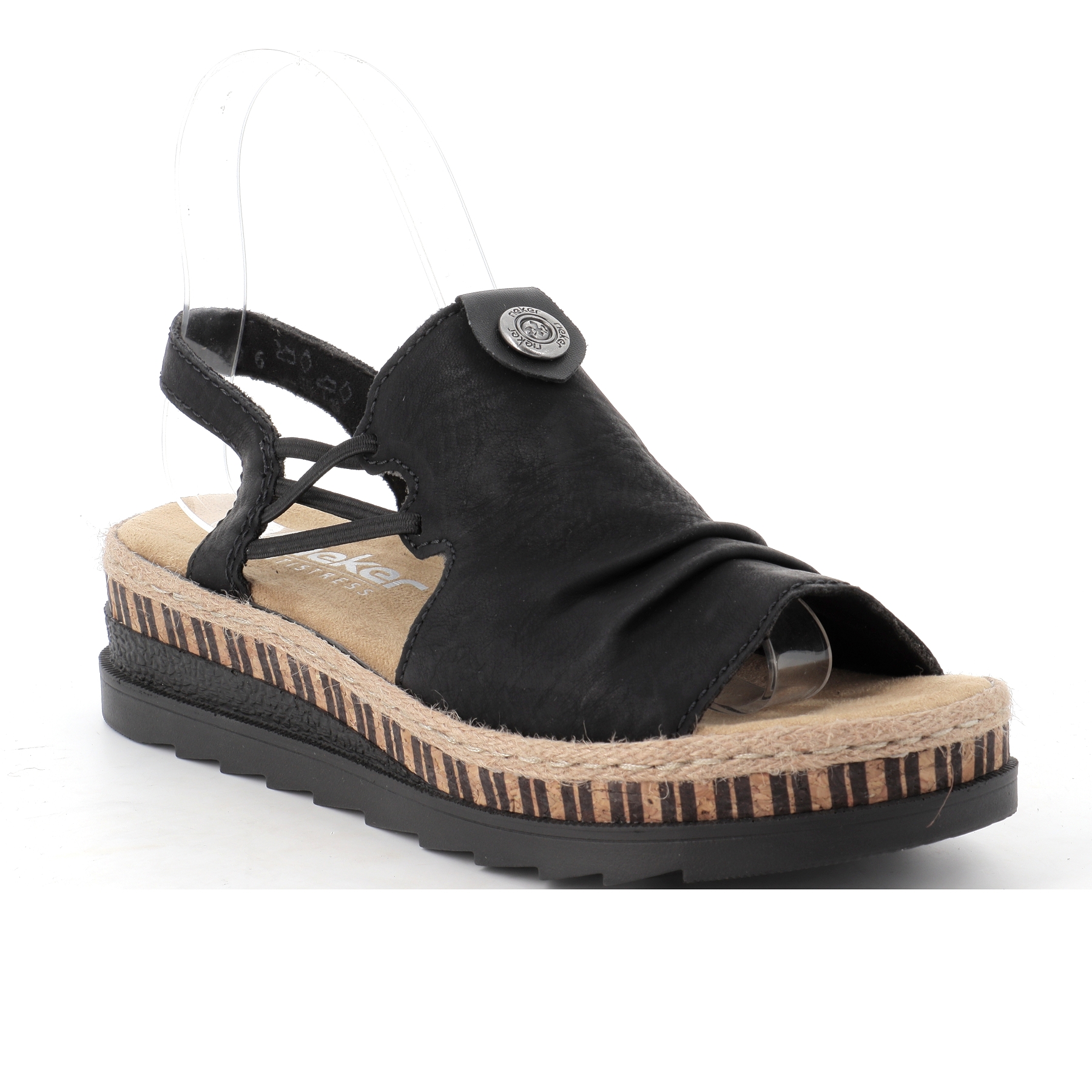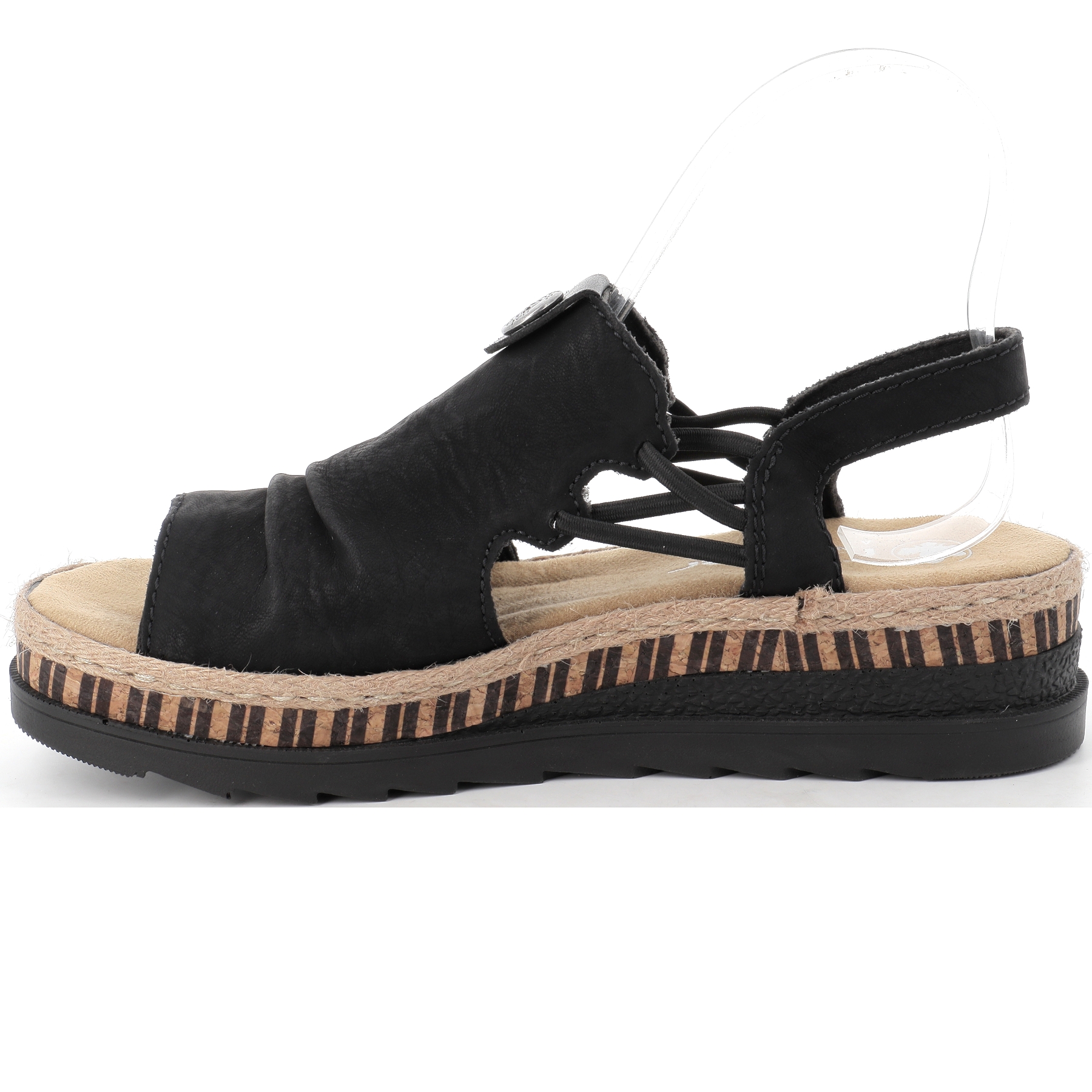 Découvrez le nu pied compensé V7972 noir de la célèbre marque Allemande RIEKER .