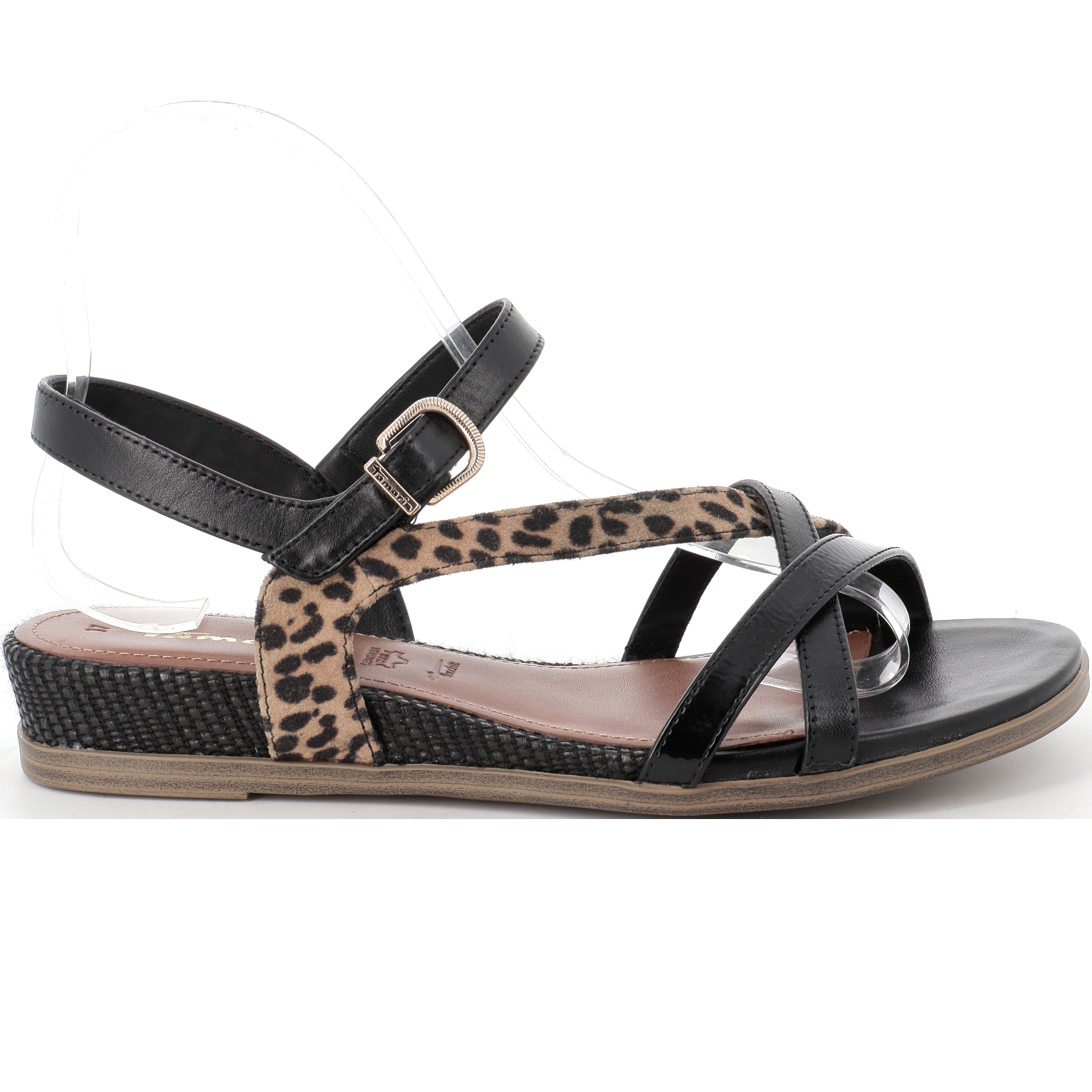 On adore ses brides croisées de couleur noir combiné leopard pour un style à la fois sobre et chic.Une sandale féminine et confortable, parfaite pour l'été.