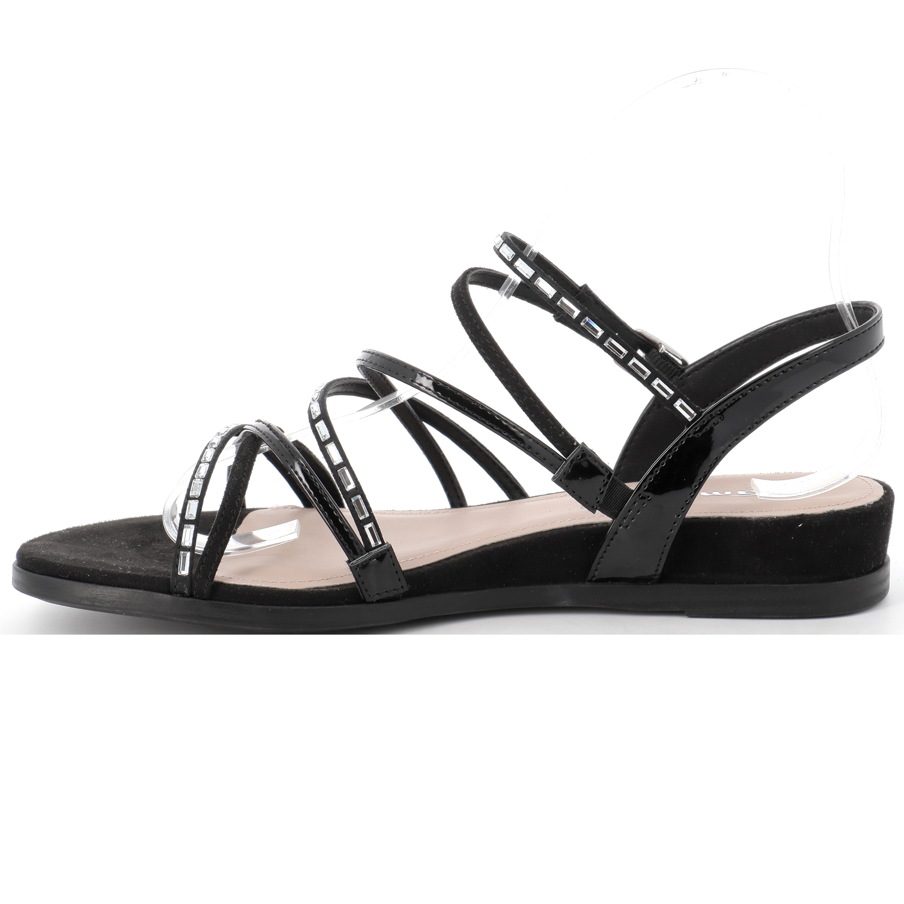 A dominante vernis noir et avec une touche d'argenté, cette plagette s'adaptera facilement à vos tenues estivales.